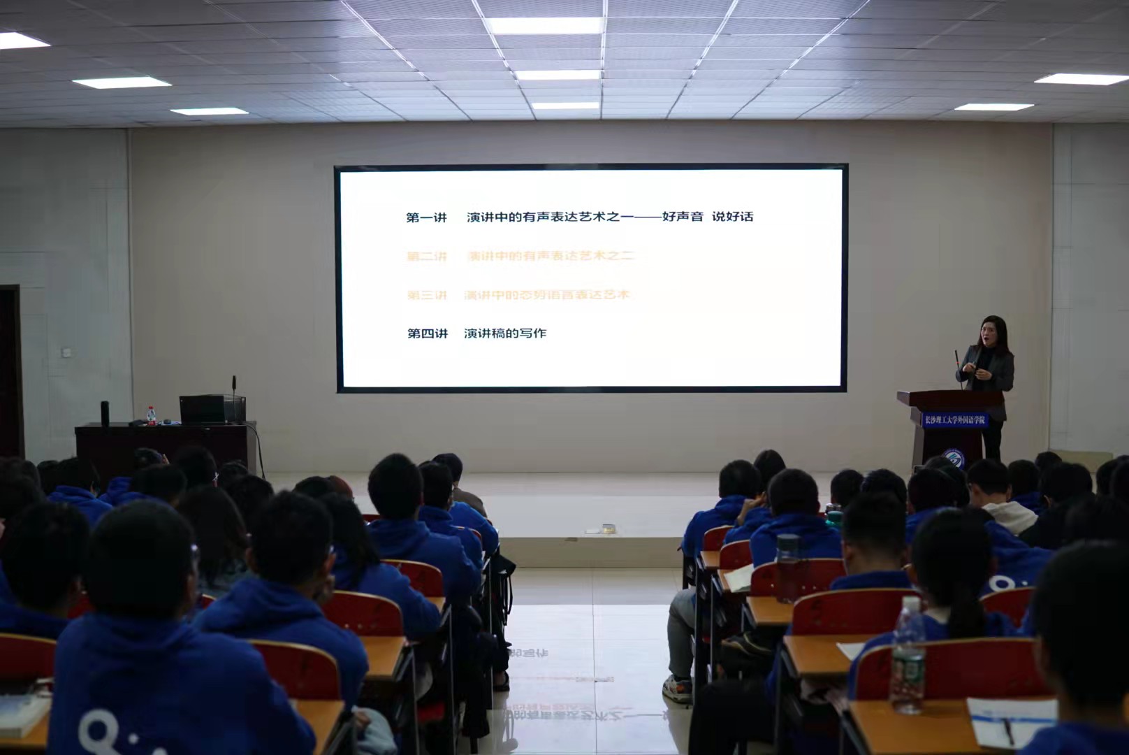 为帮助水利特岗生提高表达能力和演讲技巧,12月5日下午,水利与环境工程学院在文科楼A100举行水利特岗生素质提升工程专题培训,本次课程特邀湖南女子学院刘黎教授主讲《演讲有声表达艺术之二》,学院党委副书记银波、学工办老师刘灿、甯子豪、王正博和水利特岗班全体同学参加此次培训课程。