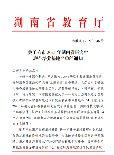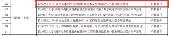 近日,湖南省教育厅公布了2021年研究生联合培养基地立项建设结果,我院与湖南省水利水电科学研究院联合申报的“LETOU体育平台-湖南省水利水电科学研究院水安全战略研究生联合培养基地”获批湖南省科教融合研究生联合培养基地。