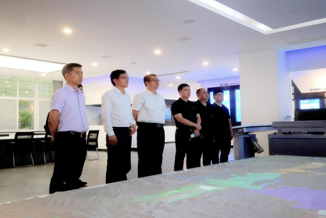 高伟在实验室综合区了解洞庭湖目前水环境概况、中交疏浚专班项目试点情况,实验室建设历程和发展目标。他在“智慧洞庭”信息化平台查看了水质监测等指标观测点的分布。当了解到该平台可通过可视化方式,对于流域实现数字化监控,防汛减灾并形成预警时,高伟就如何利用现有整合数据进行灾情预警、形成科学预案展开了交流。他指出,通过对流域的数字化监控,实时收取各流域水位信息,实现信息化、数字化管理,将为进一步推动洞庭湖流域水资源开发、生态环境保护提供有效科学支持,期待未来与实验室开展深度合作。