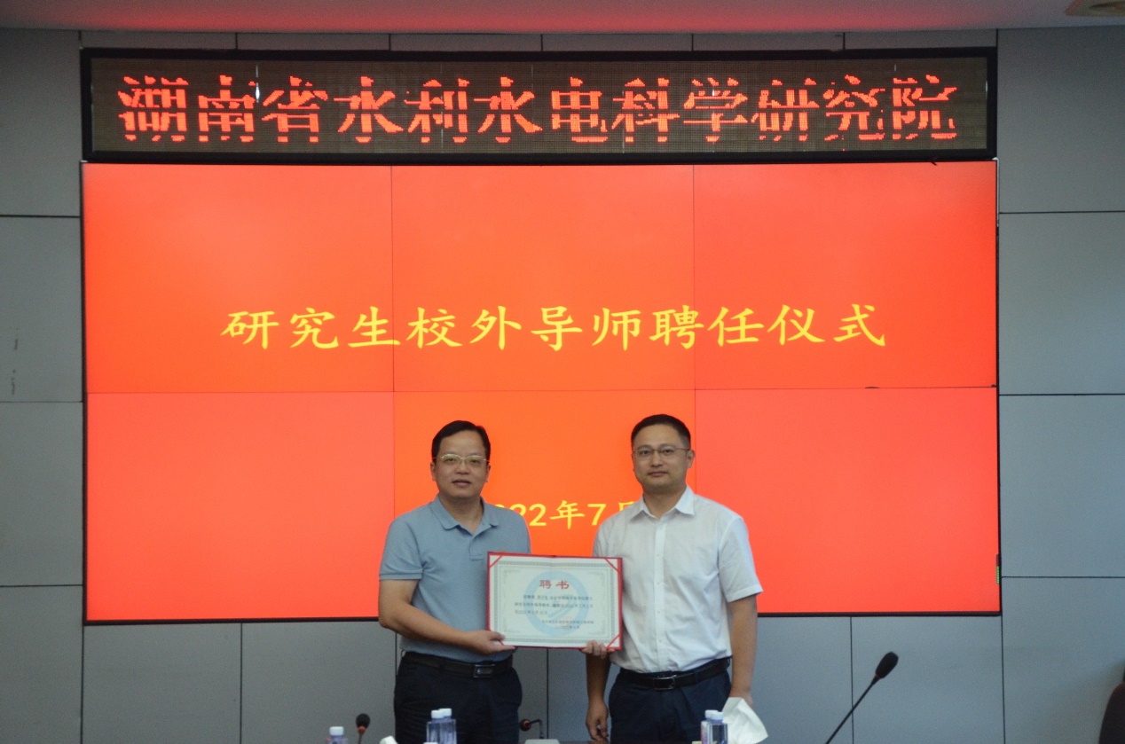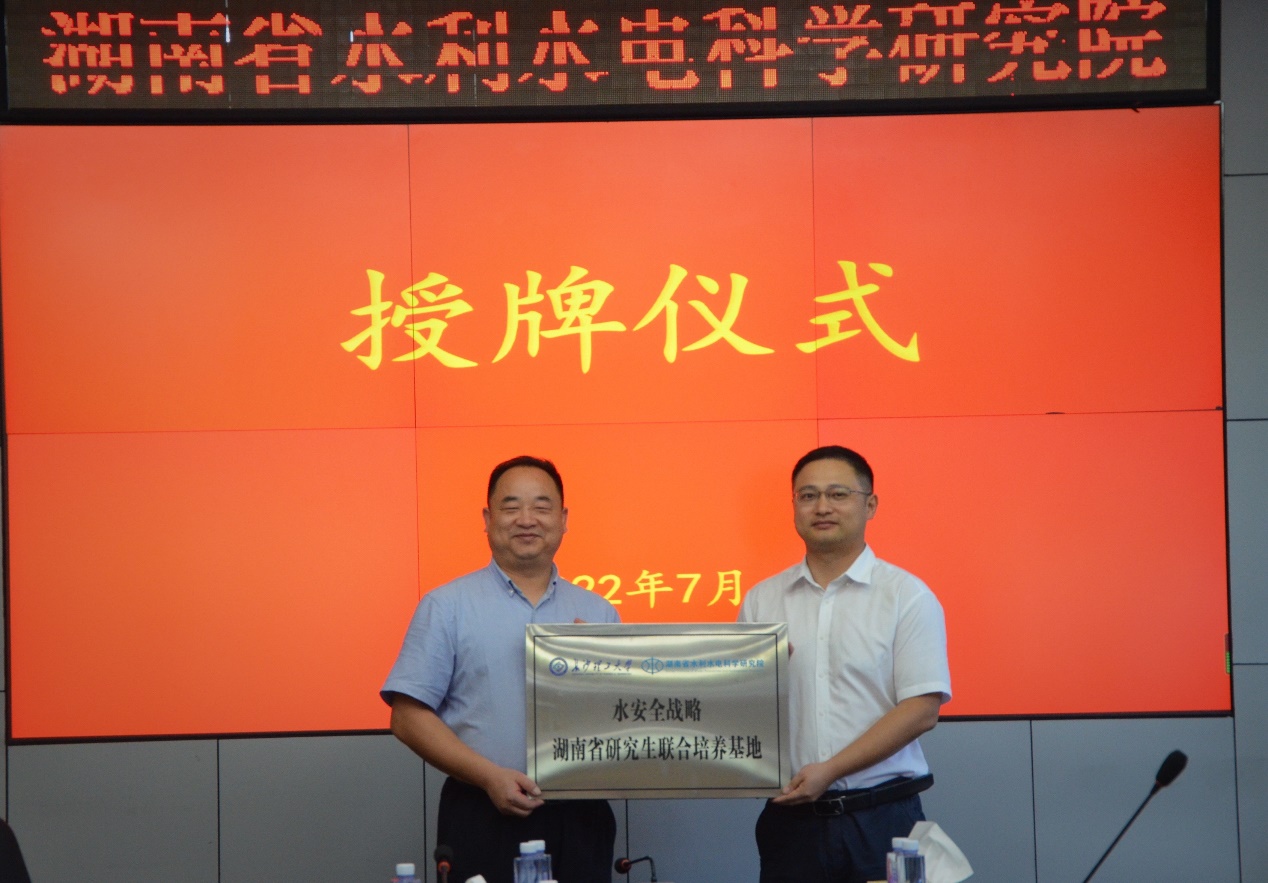 7月5日,学院院长陈杰率领在长学院班子成员赴湖南省水利水电科学研究院调研,举行“水安全战略湖南省研究生联合培养基地”授牌仪式暨校外导师聘任仪式。省水科院党委书记、院长伍佑伦参加授牌暨聘任仪式。