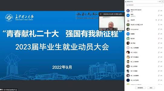 为帮助毕业生更好了解就业形势、提升就业能力、推动毕业生高质量充分就业,9月1日至2日,水利与环境工程学院分专业以线上视频会议的形式召开“青春献礼二十大、强国有我新征程”2023届就业动员指导大会。院党委副书记银波、副院长孙世权、副院长盛丰出席指导,学工办李永睿、甯子豪老师参加,2023届全体本科毕业生参与,会议由李永睿主持。