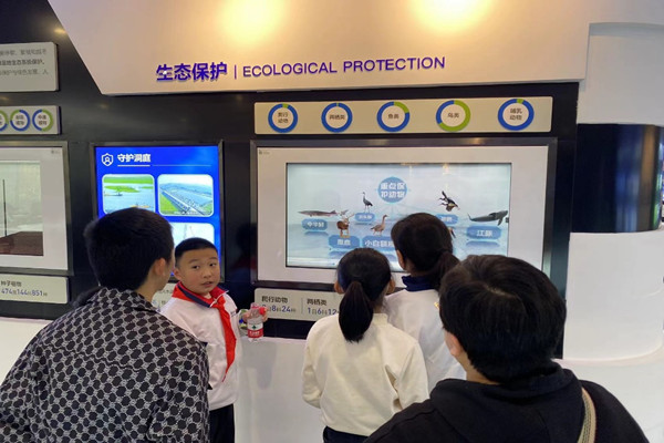 最后为自由参观与体验环节。该环节中,同学们好奇心强、兴致高,通过科普互动屏、VR驾驶舱模拟飞行等,体验到了洞庭湖区的美丽与辽阔,学习到了更多关于水环境、水生态、水安全等方面的知识,也进一步提高了自身保护环境的意识。