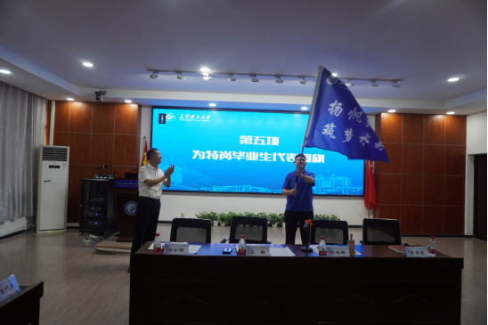 “我以长理水利特岗毕业生的名义庄严宣誓,我们将传承“大禹”精神,共守江河湖海之安澜,同绘绿水青山之画卷!我们将以昂扬的姿态和饱满的热情投身到基层水利事业中,为守护好家乡的一江碧水贡献青年之为,在绿色实践中擦亮青春底色!”会上,全体特岗生集体宣誓,表达立足基层、服务地方、奋勇向前的坚定信念。