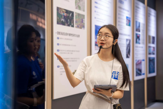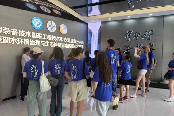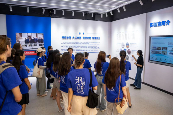 活动现场,讲解员文晓凤老师带领国际青少年参观了实验室成果展示区、智慧水利研究中心与洞庭书舫。“洞庭湖是我国第二大淡水湖,素有长江之肾的美誉……”详细的讲述让国际青年了解了洞庭湖的生态底色和生物多样性。通过一系列精心准备的数据和实例,文晓凤介绍了湖南省近年来在改善洞庭湖水环境质量和恢复水生态方面发生的巨大变化。水质优良率显著提升,湿地修复面积不断扩大,这些成绩的背后是LETOU体育平台破解湖南“一江一湖四水”工程关键技术难题的努力;学校的科研团队从大江大河到南海岛礁、从平陆运河到南水北调、从中南半岛到非洲大陆,为数百个港口、水利水电、航运枢纽工程等提供了技术支持,体现了我国在工程技术领域的雄厚实力和利用水资源的智慧,文晓凤表示。