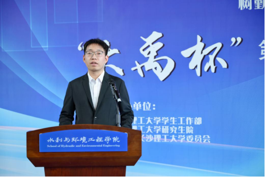 “比起证书,更为重要的是我们在参加竞赛的过程中将知识与实践结合,培养了我们的综合素质”,往届参赛选手代表水电2201班李子源从自身参赛经历出发,讲述了“大禹杯”对于他成长道路上的重要作用,正是得益于往届大禹杯的收获与成长,李子源对于科研竞赛有了更深刻的认识。新生代表给排水2403班肖湘婷分享了参赛过程中的成长与收获,她表示此次竞赛提供了理论联系实践的机会,使她能够与小组成员携手合作,在实践中深化对知识的理解,共同解决难题。