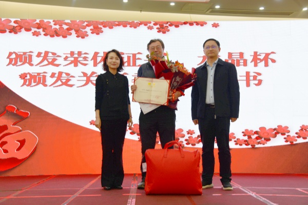 大会同时举行了退休教师荣休仪式。院党委书记喻玲娜、院长陈杰为退休教师毛建平颁发荣休证书、荣休水晶杯和关工委副主任聘任证书。毛建平感谢学院对他的关心,期待退休后能继续为学院的发展贡献自己的力量。