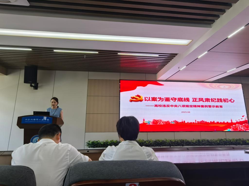 为持续深化作风建设,筑牢党员干部廉洁自律思想防线,推动全面从严治党向纵深发展,6 月 17 日下午,我院在新能源 1 号楼 2 楼会议室成功举办 “以案为鉴守底线 正风肃纪践初心 —— 高校违反中央八项规定精神案例警示教育” 专题辅导报告会。学院党委喻玲娜担任主讲,学院党委班子成员及全院教职工参加会议。