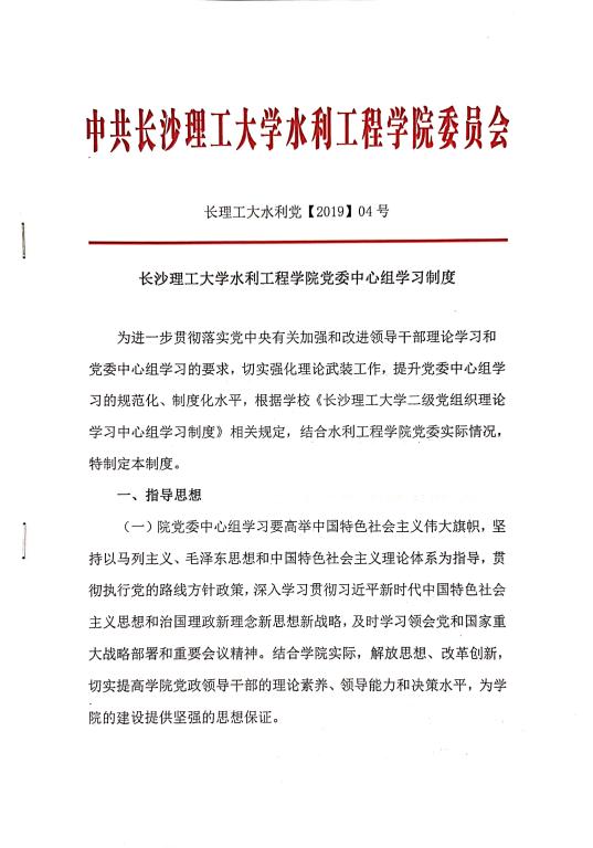 LETOU体育平台水利工程学院党委中心组学习制度(长理工大水利党【2019】04号)