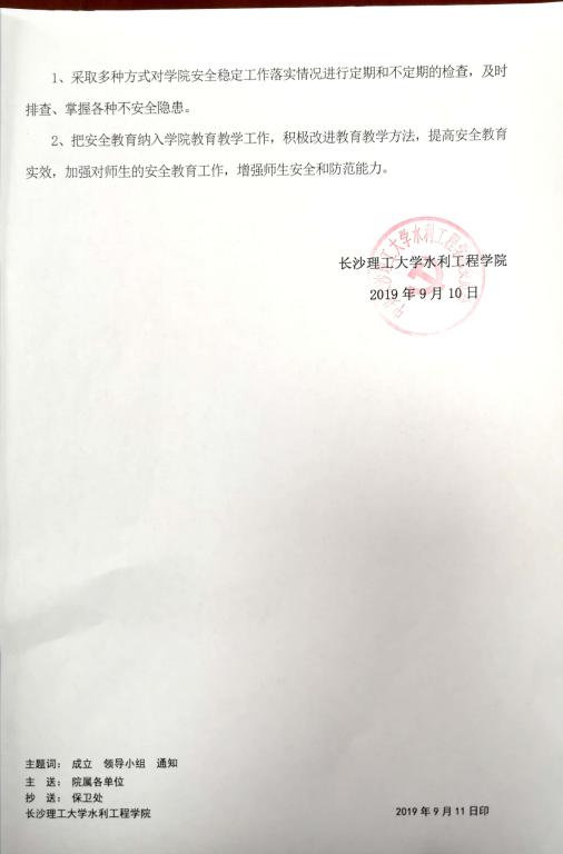 关于成立水利工程学院安全稳定工作领导小组的通知(长理工大水利党【2019】07号)