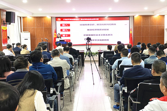 9月22日下午,水利工程学院党委书记喻玲娜在工三B319为全体教职工解读《习近平谈治国理政》第三卷。