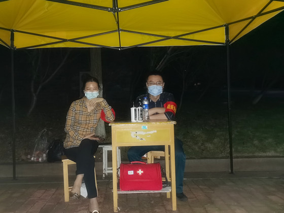 从早上八点到晚上九点半,先锋队员分两批坚守在汀香园前坪、甘饴园前坪、艺术楼前坪,主要工作内容为疫情期间校园内学生突发事件的处理。