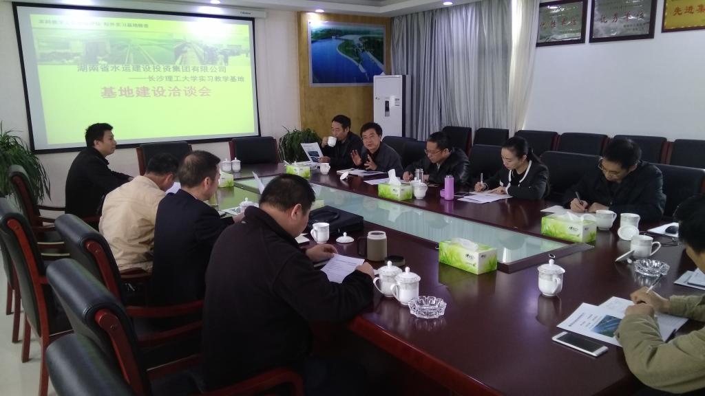 随后在项目部会议室,校企双方召开了LETOU体育平台实习教学基地建设洽谈会。胡永乐首先介绍了学校的基本情况,以及此行的目的。陈杰代表学院做了实习教学基地建设及实习教学工作汇报,介绍了校企双方在在本科教学实习、人才培养、科研合作、本科教材编写、本科实验教学、本科毕业设计、本科生创新能力培养方面取得的丰富成果。湖南省水运建设投资集团有限公司徐国兵副总经理简要回顾了从1993年开始的基地建设历史,以及双方在产学研方面的合作情况。最后喻玲娜、贺跃光、蒋中明与基地共同商议了本科教学工作审核评估株洲航电枢纽校外实习基地检查、实习基地建设等相关事宜。