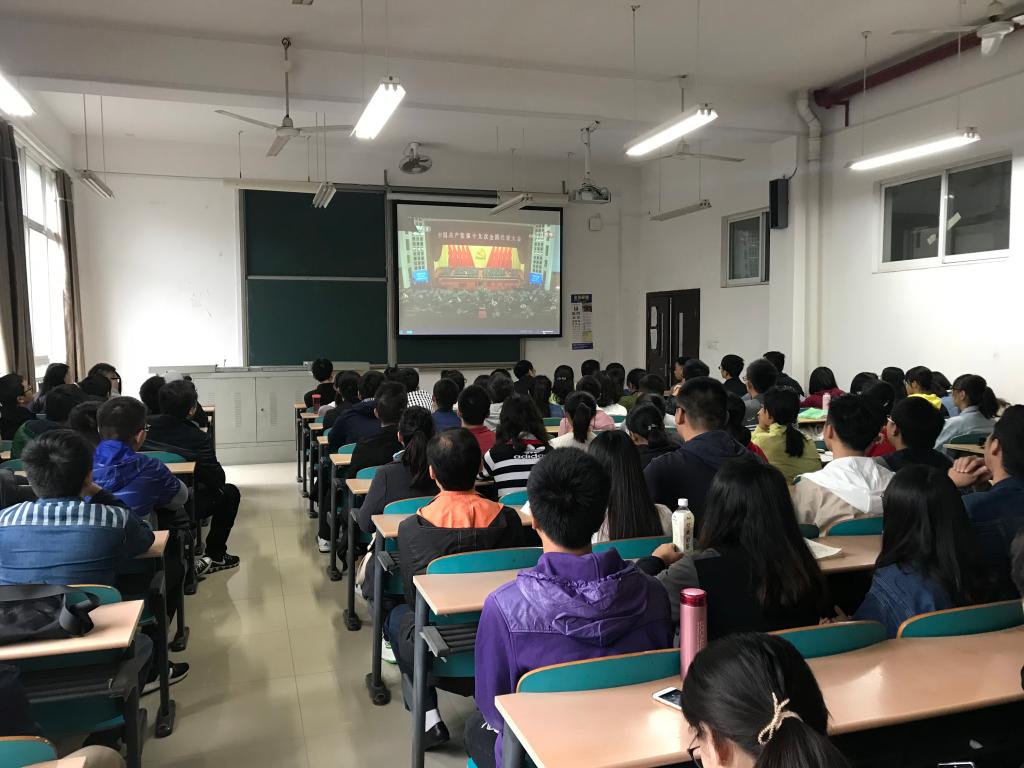 10月18日上午9:00,水利学院党委组织全院师生在工科三号楼A207教室集体观看中国共产党第十九次全国代表大会开幕会。水利工程学院常务副院长胡旭跃、副书记郭林、副院长蒋中明和全院师生共120余人集中观看了开幕会盛况。
