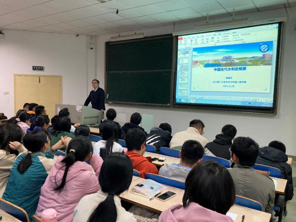 为提高2021级新生对所学专业的认识,加深对专业的了解, 1126日晚,水利与环境工程学院在金盆岭校区6207举办中国古代水利史概要”为主题的通识教育讲座,主讲人为水利与环境工程学院水文与水资源工程系胡国华教授,讲座现场座无虚席,气氛热烈。