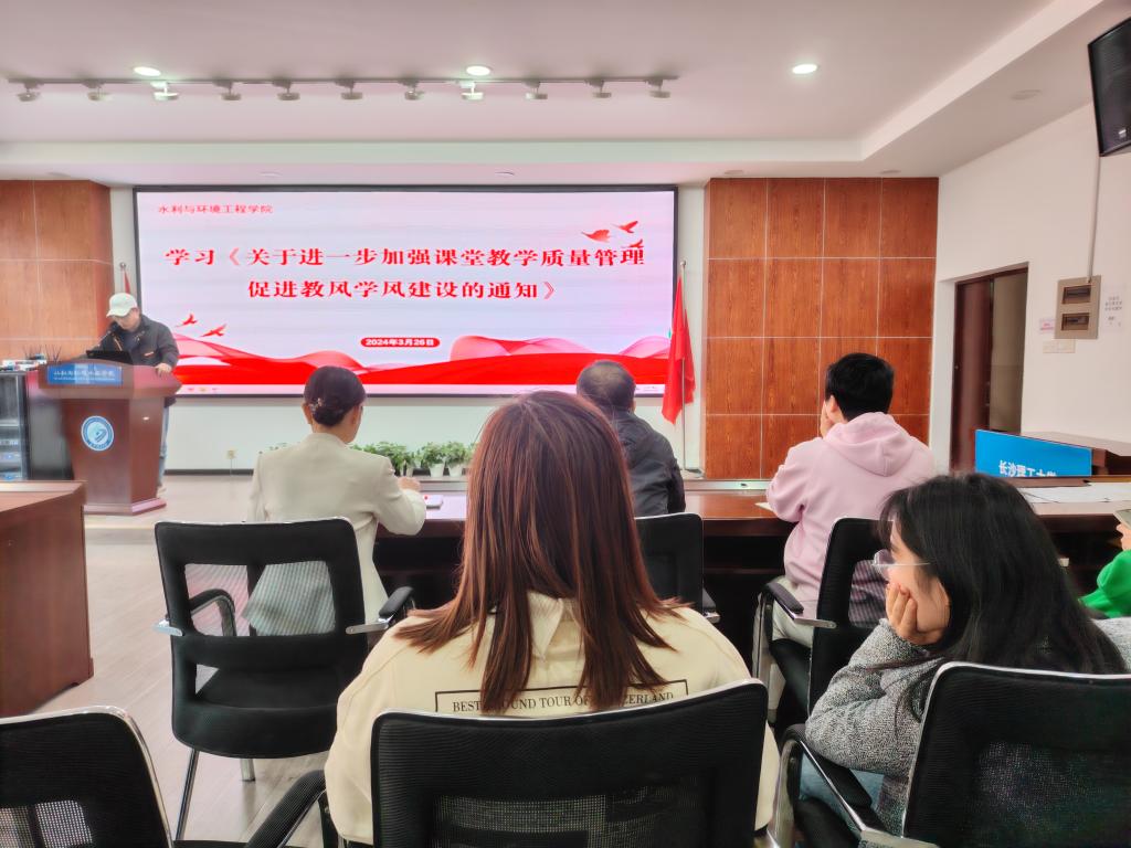 活动中,副院长盛丰通报了学校检查中发现的典型教学问题案例,重申了课堂责任意识。院党委书记领学了《关于进一步加强课堂教学质量管理促进教风学风建设的通知》和省教育厅《关于进一步加强普通高等学校教风学风建设的意见》等文件的规定,传达了省校两级部门关于加强教风学风建设的精神。要求全院教师认真学习教学质量管理规定,加强教书育人的政治意识、责任意识、规范意识和质量意识,积极推进课程教学改革,提升课堂教学能力,提高课堂教学质量。