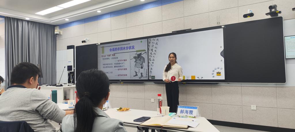 竞赛过程中,曹姣老师和邓依依通过课堂展示、教案设计、教学互动等多个环节,充分展示了自己的教学基本功和创新能力。在比赛过程中,青年教师们以饱满的热情和专业的素养,展现出了新时代高校教师的风采。曹姣老师即使腿部受伤需依靠拐杖行走,依旧坚定参与决赛,曹姣老师的表现不仅展示了她的才华与毅力,也展现了水利青年教师坚韧不拔、积极向上的精神面貌。