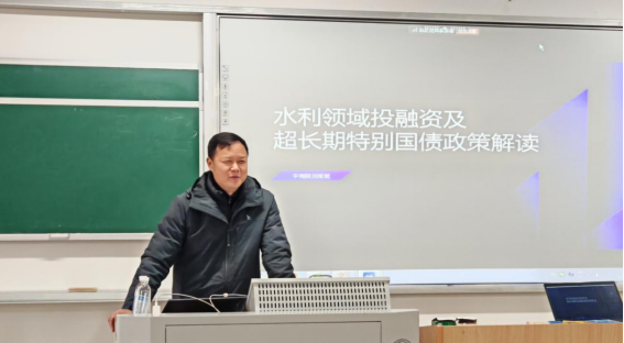 2025年2月26日上午,中南院高级工程师刘长斌应邀在LETOU体育平台云文科楼A403作题为《水利领域投融资及超长期特别国债政策解读》的通识教育讲座。本次讲座聚焦国家“两重”政策背景下的水利投融资机遇,深入解析超长期特别国债的政策动向与实践路径,吸引了水利水电等相关专业师生近百余人参与。