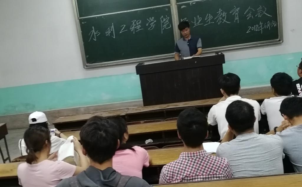 为做好我院2018届本科毕业生教育与文明离校工作,6月13日上午10点水利工程学院在金盆岭3教115召开了毕业生教育会议。参加本次会议的成员有2108届全体毕业生,会议由就业专干贺志琼老师主持。