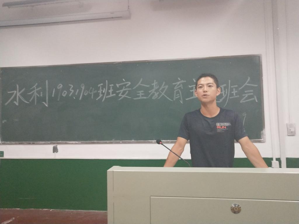 为进一步加强学生安全教育管理,提高学生安全防范意识,切实保障学生的人身财产安全和校园稳定。2019年9月29日晚8点,水利工程学院2019级各班级在金盆岭14教自习室召开了安全教育主题班会,班会由各班班长主持。