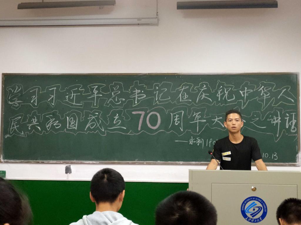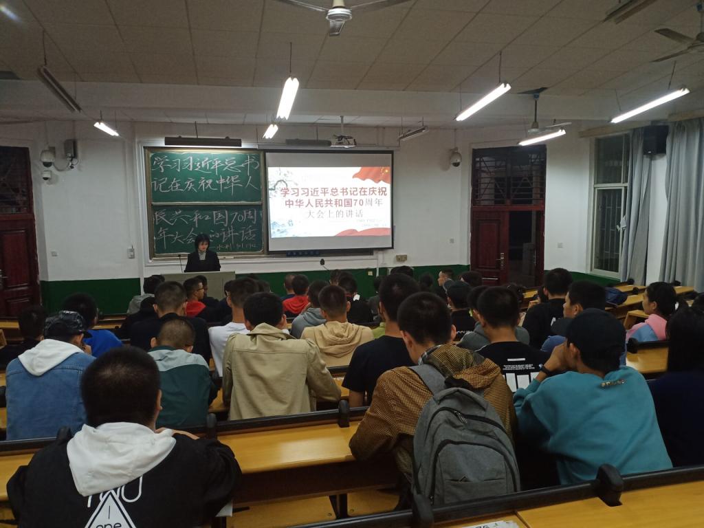 在庆祝中华人民共和国成立70周年大会上,习近平总书记发表了重要讲话,为了提升广大水利学子的爱国情怀,提高政治理论素,坚定社会主义理念,水利工程学院组织全院同学开展以“学习习近平总书记在庆祝中华人民共和国成立70周年大会上的讲话”为主题的团组织生活会。
