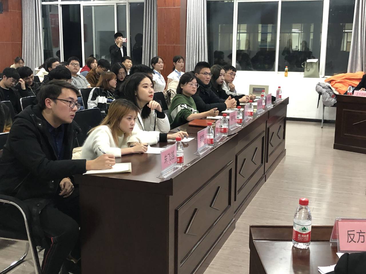 经过评委综合商定,水利1901班摘得冠军奖杯,水利1902班彭争获最佳辩手称号。