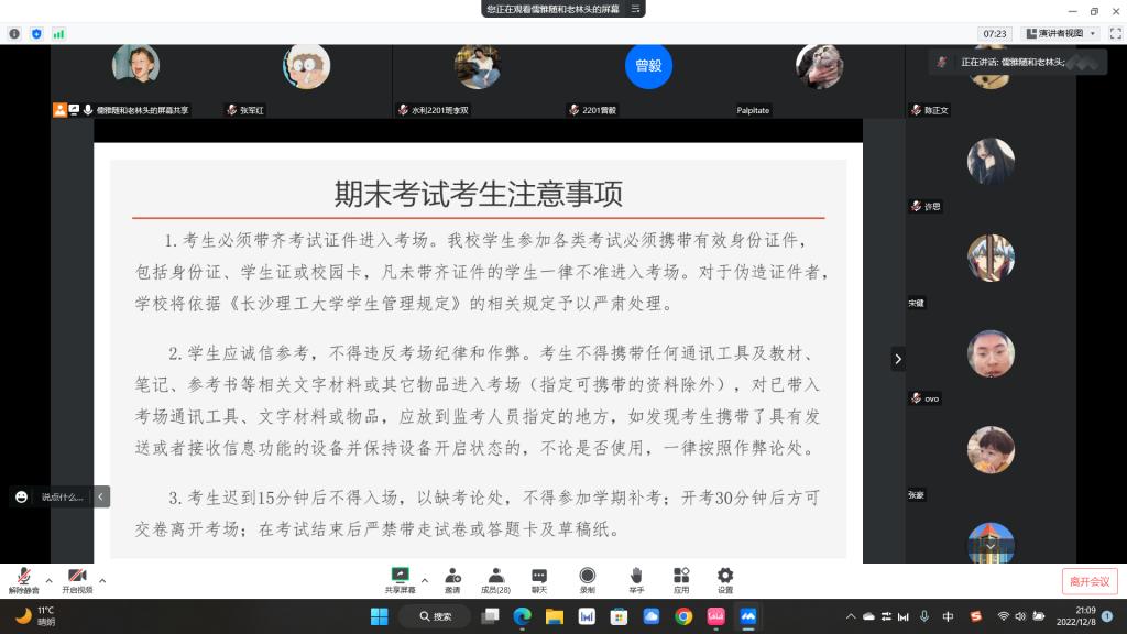 为进一步加强考风考纪,维护考试的公平公正。12月9日水利与环境工程学院本研各班级开展加强考风考纪主题班会,会议采取线上线下相结合的方式召开,由各班班长主持。