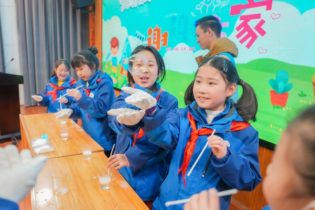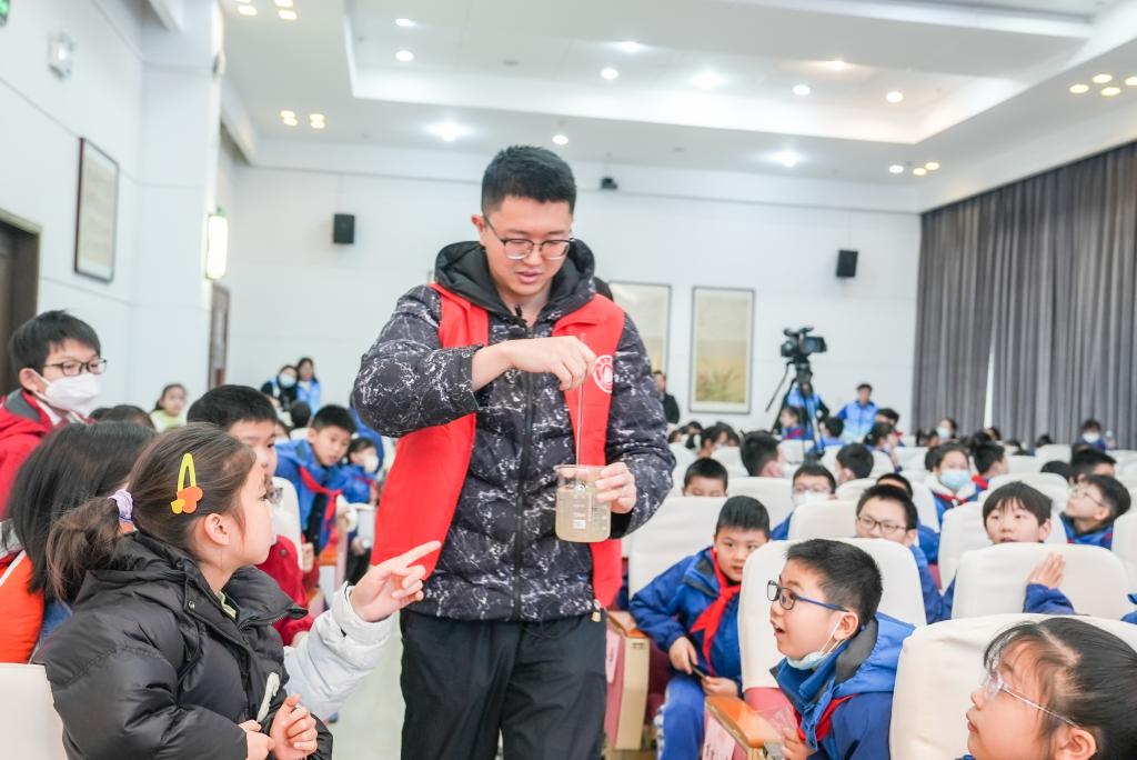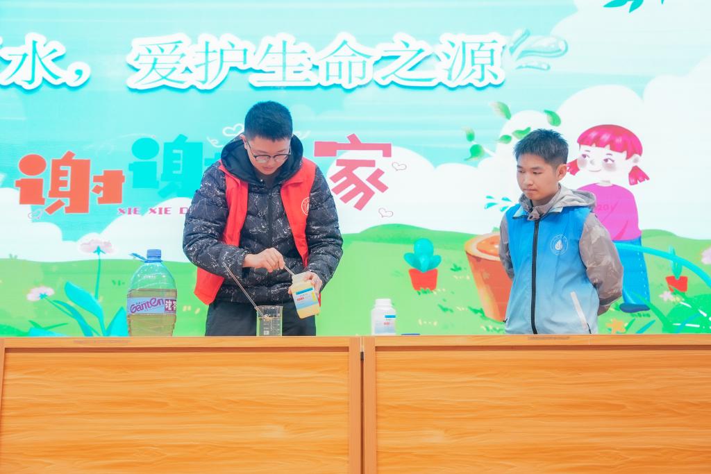 本次活动旨在提高小朋友节水、惜水、爱水、护水意识,播种团结友善、服务社会的精神种子。为增加小朋友对节水知识及雷锋精神的了解,“大禹之子”开展节水知识抢答环节,小朋友热情洋溢,踊跃抢答,充分体现了新时代接班人的精神风貌。随后,“大禹之子”向大家演示了混凝沉淀实验和“蹦蹦跳跳的泡泡”的有趣实验,让小朋友对水的理化特性、“水是什么”有了更深入的认识。在混凝沉淀实验中,“大禹之子”向小朋友直观地展示了一杯原水如何在混凝沉淀的操作下变成了一杯清水;在“蹦蹦跳跳的泡泡”实验中,“大禹之子”邀请了三批小朋友上台共做实验,在“大禹之子”的指导下,小朋友投入地完成每个动作,获得完美成功。同时,现场还设置了科普讲座环节,由湖南省水利水电科学研究院高级工程师徐幸仪主讲,介绍了古今中外的治水故事,分享了生活中节水妙招,让小朋友切身了解节水的重要性,培养节水好习惯。