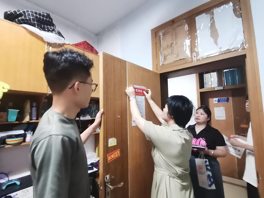 银波带领辅导员老师们深入学生宿舍,为党员宿舍挂牌,并与学生党员亲切交谈,了解学生近期的思想动态、学习情况和生活状况,了解毕业生的毕业论文、毕业设计的完成进度,她希望毕业生党员们要关心周边同学,积极提供帮助。此外,银波对正在推进的校园电动车整治工作询问党员们的想法,讲解了学校治理电动车的原因和方案,对同学们提出的疑问积极解答,勉励党员同志们要增强大局意识,提高政治站位,做好模范表率,积极引导同学们配合学校完成电动车的治理工作。