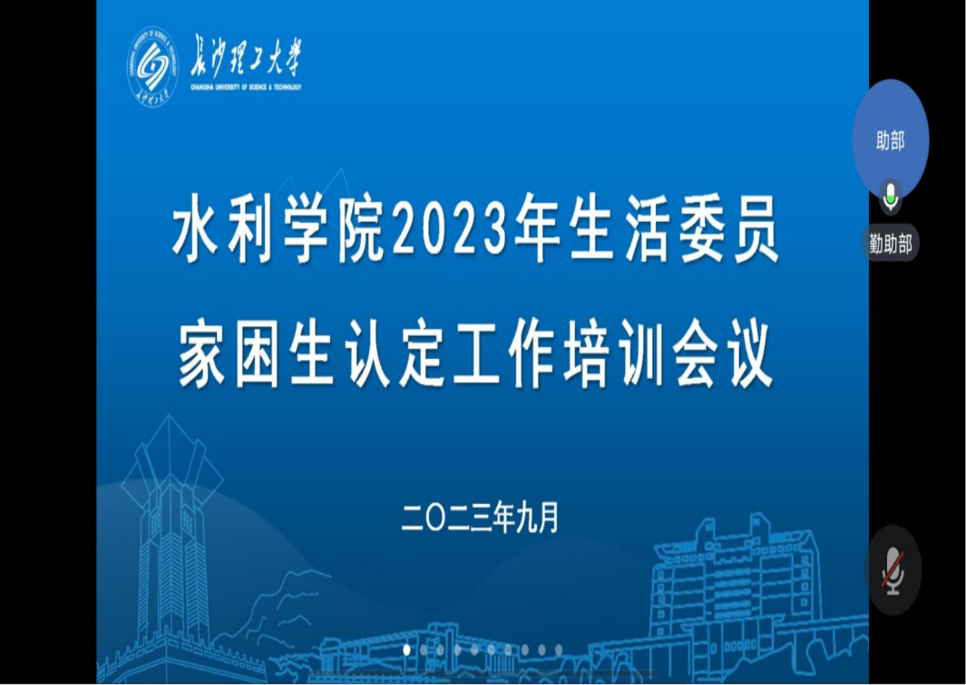 9月21日晚上,院勤助部组织召开2023-2024学年资助工作线上培训会,院资助工作负责老师王正博、勤助部成员、本科生教学班级的生活委员2023级下班党员参会,此次培训由彭美南主持。