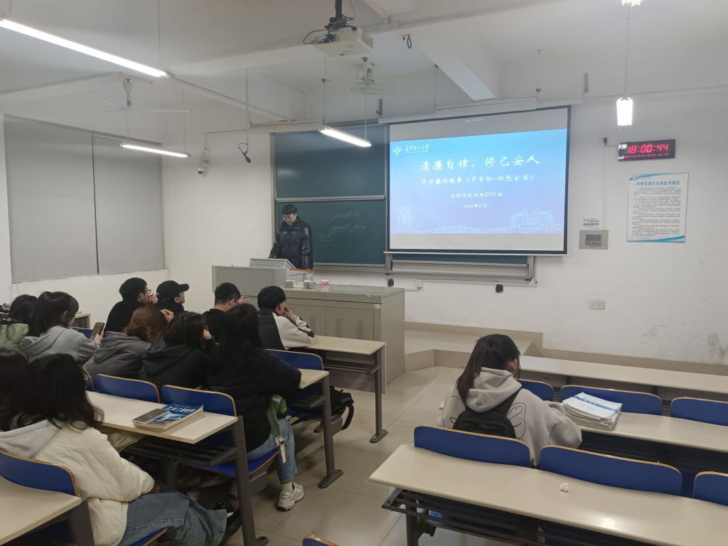 为深入学习贯彻习近平新时代中国特色社会主义思想和党的二十大精神,增强廉洁自律意识,扣好廉洁“第一粒扣子”,近日,水利学院组织全体学生开展廉洁教育主题班会。