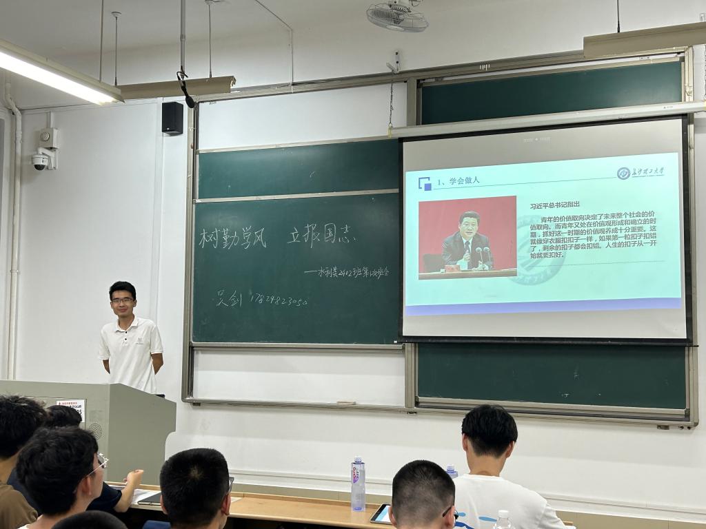 为增强班级凝聚力,帮助新生更好地适应大学生活,水利学院于9月15日19:00在工科三号教学楼召开“树勤学风,立报国志”2024级本科新生第一次班会,新生班主任和2024级全体本科生到场参会。