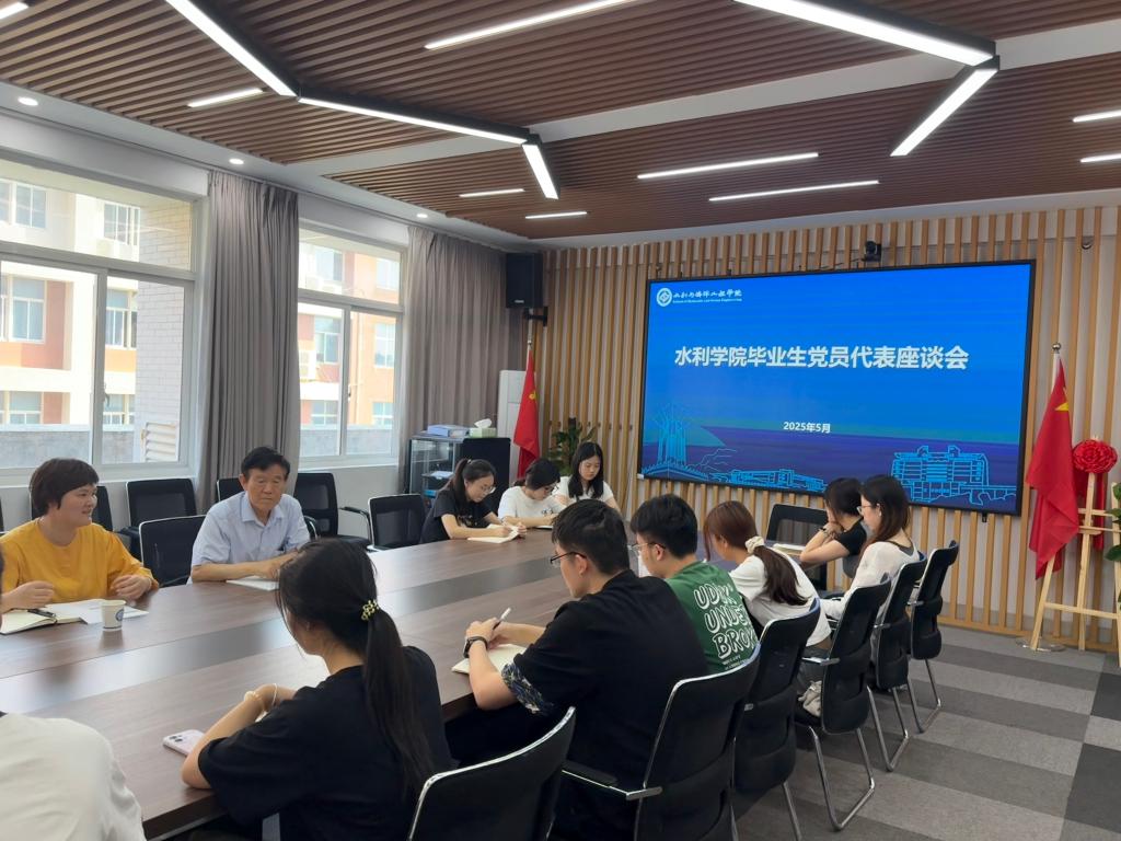 5月26日,水利学院在新能源1栋420会议室组织召开2025届毕业生党员座谈会。校关工委常务副主任王乃厚、院党委副书记银波出席座谈会,与14名毕业生党员代表共话使命担当,会议由院关工委秘书王祎主持。