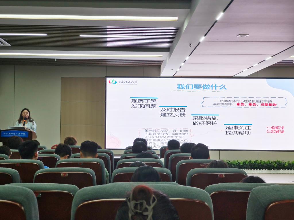 此外,王正博精心选取了贴近大学生活的多个典型案例,现场引导学员们进行情景模拟和讨论:“当室友持续情绪低落、回避社交时怎么办?”“面对同学倾诉学业压力巨大濒临崩溃,如何安全有效地介入?”通过剖析真实场景,学员们更直观地掌握了在不同情境下提供恰当支持、及时转介专业资源的策略和方法。王老师还分享了实用的沟通话术和危机初步干预原则,让学员们深受启发。