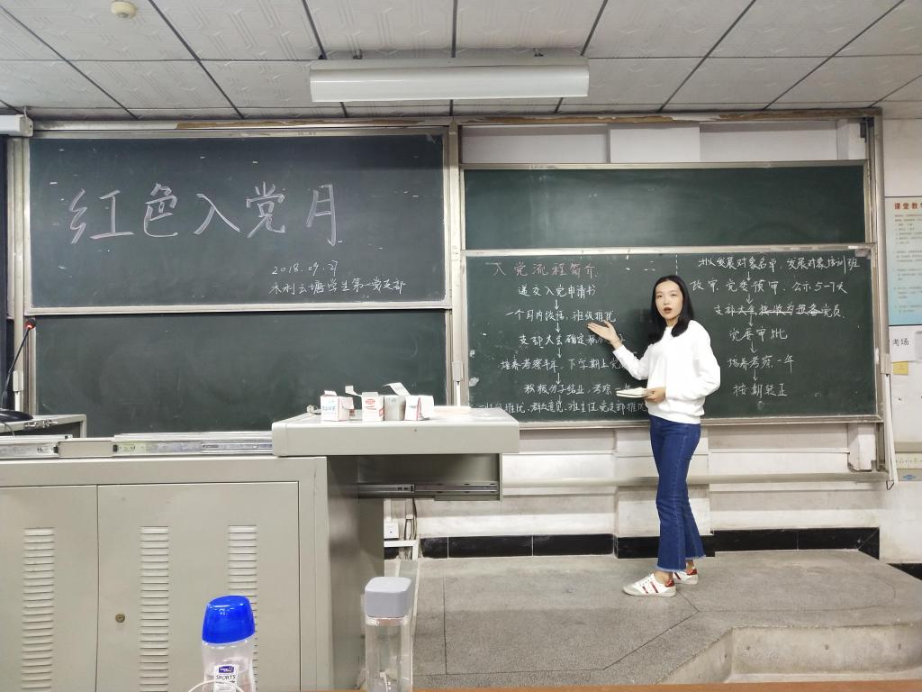 活动第二项由张雨涵同志介绍水利云塘学生第一党支部,接着围绕入党流程这一同学们最为关心的事情进行了详细介绍。入党流程为递交入党申请书、谈话等二十多个步骤。张雨涵同志特别提醒同学们在入党期间总共有三次考核,号召同学们积极进行理论知识学习,同时在实践中加强自己的党性休养。