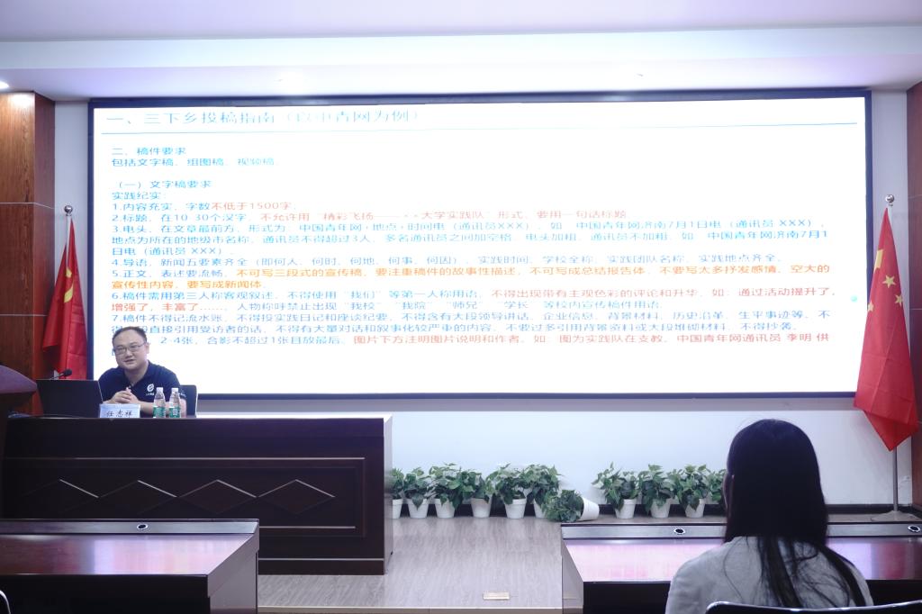 6月27日晚7点半,水利学院在工科三号楼B区319召开暑期“三下乡”社会实践宣传工作培训会。本次培训由校党委宣传部副部长任志祥主讲,水利学院暑期“三下乡”社会实践集中实践团和分散实践团代表参加。