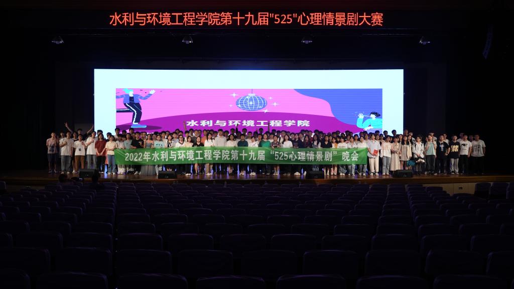 2022年5月28日晚,水利学院第十九届“5·25”心理情景剧大赛于金盆岭校区五教大礼堂举办。本次晚会伍月担任主持人,学院党委副书记银波书记、学院心理辅导员刘灿老师、21级年级辅导员綦丽老师。19级年级辅导员甯子豪老师担任评委,各班班主任老师、心理部全体成员及21级全体同学参加本次活动。