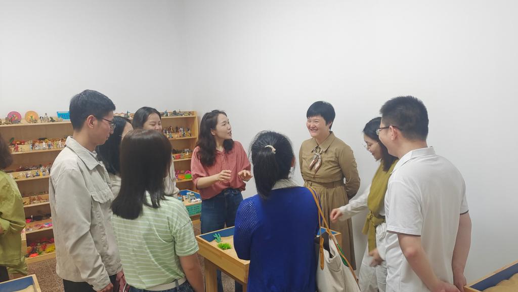 校心理健康教育中心杨爽老师带领老师们依次参观了各个功能区域并详细介绍了各治疗室的心理设备的正确使用方法,从而更好的让老师们近距离参观心理功能室,体验专业设备,在体验的过程中,杨爽向老师们讲解每一个心理设备的作用。参观同时,还给老师们普及了心理健康知识以及心理咨询预约流程。