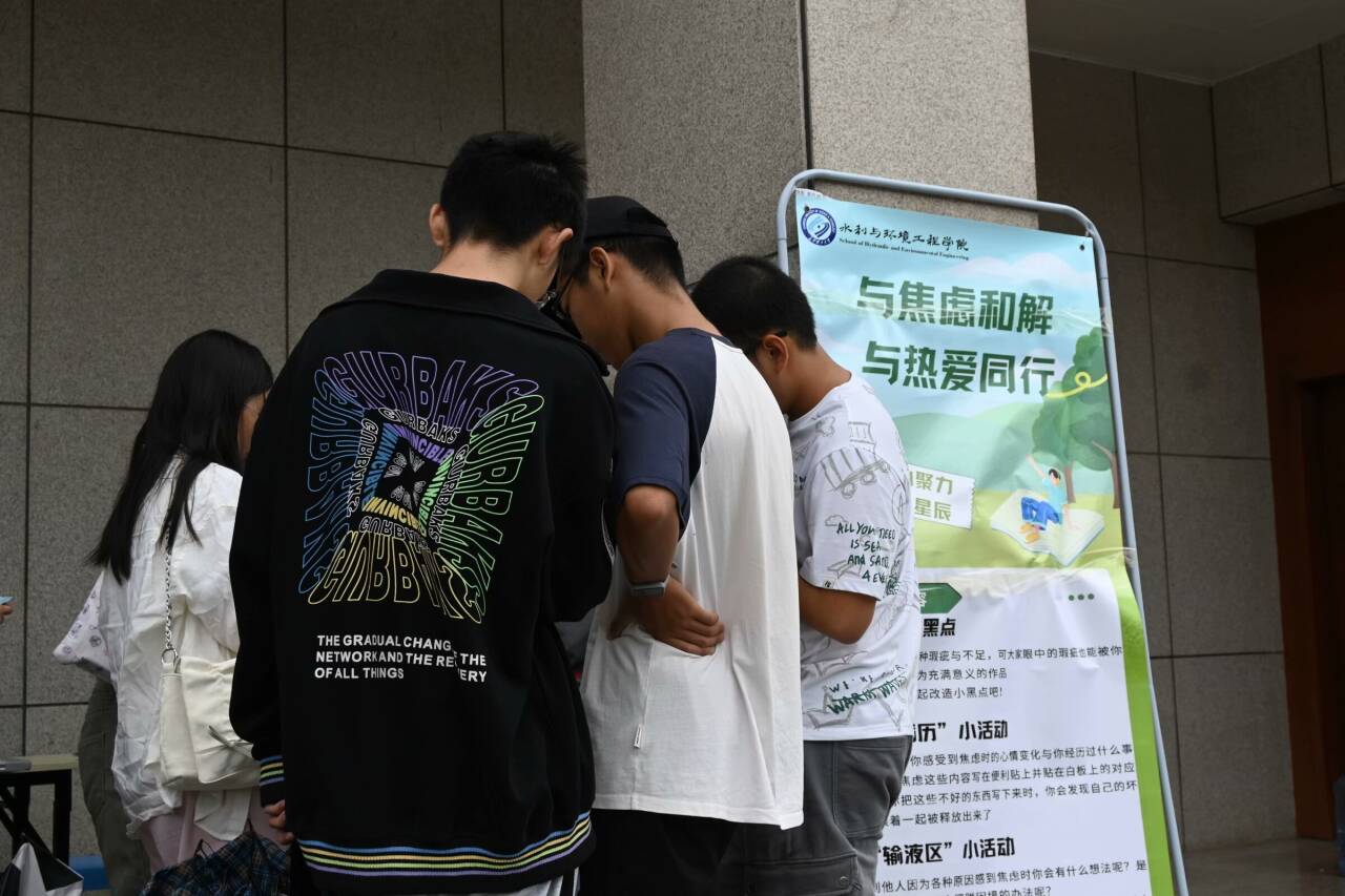 本次活动中,所有参与人员首先按照小组划分,与本组组员熟悉交流。接着齐心协力找出藏匿线索后,根据线索内容回到活动基地点向工作人员复述完整故事并回答与故事相关的心理学小问题。最后完成上述任务的小组前往了心理部搭建的焦虑舒缓区参与反焦虑小游戏并学习了相关心理学科普知识。现场氛围浓厚,大家情绪高涨,积极与身边组员相互交流,共同合作。