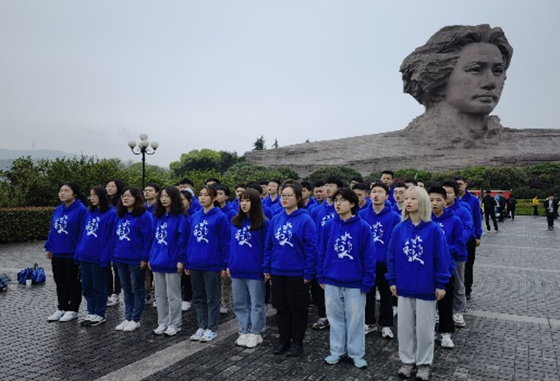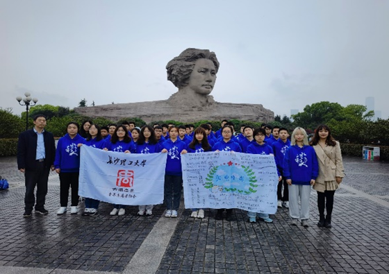 4月18日下午水利工程学院水电与水文特岗班全体学生在班主任蒋中明老师和辅导员王正博老师的带领下步行前往长沙橘子洲头开展了“我为党来送祝福”研读和寄语祝福活动。