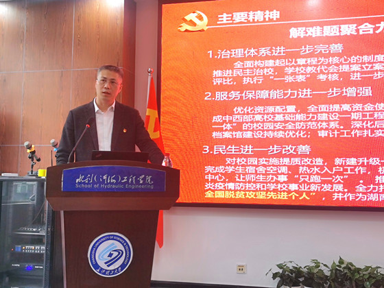 4月27日下午,校党委副书记蒋昌波在工三B319为水利工程学院全体教职工开展中国共产党LETOU体育平台第四次代表大会精神宣讲。学院党委书记喻玲娜主持本次宣讲。