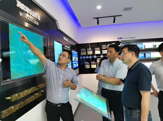 在洞庭湖水环境治理与生态修复湖南省重点实验室考察时,学院邓斌老师向陈建华和罗赤橙等介绍了洞庭湖的概况及所面临的机遇与挑战,洞庭湖实验室建设历程、主要研究方向,并重点介绍了智慧洞庭综合信息化平台。陈建华和罗赤橙表示,在当前“绿色发展”的大环境下,中电建生态环境集团和鑫远集团在流域环境综合治理等方面有着强烈的科技需求,双方可深入开展相关合作。
