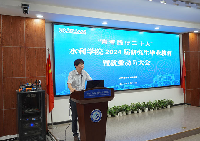 为全面推进学院2024届研究生毕业生就业工作,引导毕业生树立正确的就业观,养成良好的行为规范,9月11日下午3点,水利学院在云塘校区工三B319召开2024届研究生毕业生毕业教育暨就业动员大会。院党委副书记银波、副院长李毅、学工办老师杜丘、陈鑫林、王正博参加以及2024届全体研究生参会,会议由罗鑫主持。