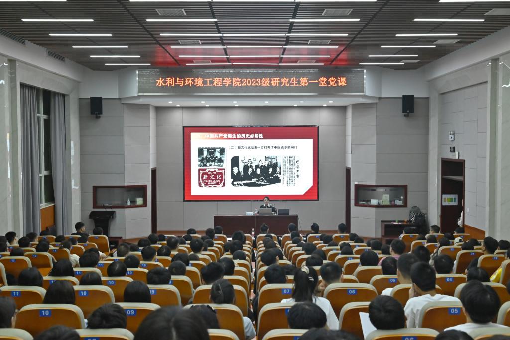 为深入学习贯彻习近平新时代中国特色社会主义思想,教育引导2023级研究生坚定理想信念,以实际行动践行党的二十大精神,9月20日晚,水利与环境工程学院在云塘校区工二B301组织举行2023级研究生的第一堂党课。本次党课由院党委书记喻玲娜主讲,2023级全体研究生参加。