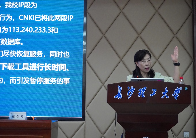 围绕AIGC时代数字资源获取的方法和途径,张雪梅重点介绍了为研究生的科学研究提供专业数据支撑的校图书馆和超星发现系统,并强调要杜绝恶意下载行为,恪守科研诚信和学术规范,做负责任的研究者。