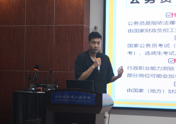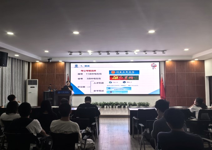本次活动邀请了六位优秀毕业生分享他们的求职经验和心得。钟雅婕围绕湖南省公务员考试的选岗与备考经验进行了介绍。赵逸波结合自身的求职历程,介绍了备考广东省公务员考试等考试今年的时间安排以及考情分析。黄运彪、戴煜围绕国家电网招聘考试的专业要求、笔试内容以及面试要求等内容进行了分享。王正博则结合选调生考试的报考以及如何平衡学业和就业等内容进行了介绍。