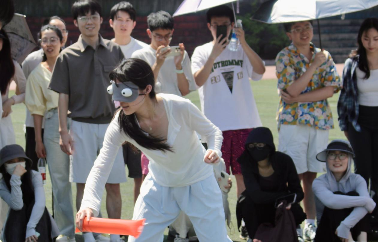 本次运动会设置了“企鹅漫步”“暴打尖叫鸡”“腰缠万贯”“抢凳子”“摸石过河”“里里外外”“数字华容道”等七个比赛项目。水利学院在多个项目中表现亮眼,在的“暴打尖叫鸡”环节,场内选手蒙眼持棒击打对手,场外队友高声指挥,在三分钟内淘汰多名对手,赢得现场阵阵喝彩;在“腰缠万贯”环节,队员们通过布带缠绕腰间接力完成10米赛道,在往返接力中配合流畅,名列前茅的用时成绩为团队奠定优势。