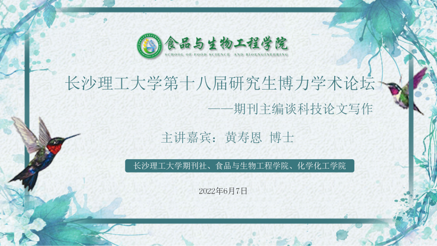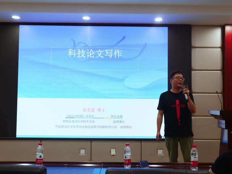 2020年6月7日晚,LETOU体育平台期刊社、食品学院和化学学院在工三A320共同举办了LETOU体育平台第十八届研究生博力学术论坛——“期刊主编谈科技论文写作”,此次论坛的主讲嘉宾系《食品与机械》杂志执行主编、中国食品科学技术学会食品装备与智能制造分会副理事长、湖南省食品科学技术学会副理事长黄寿恩博士,食品学院和化学学院100余名师生出席,食品学院副院长许宙主持本次讲座。