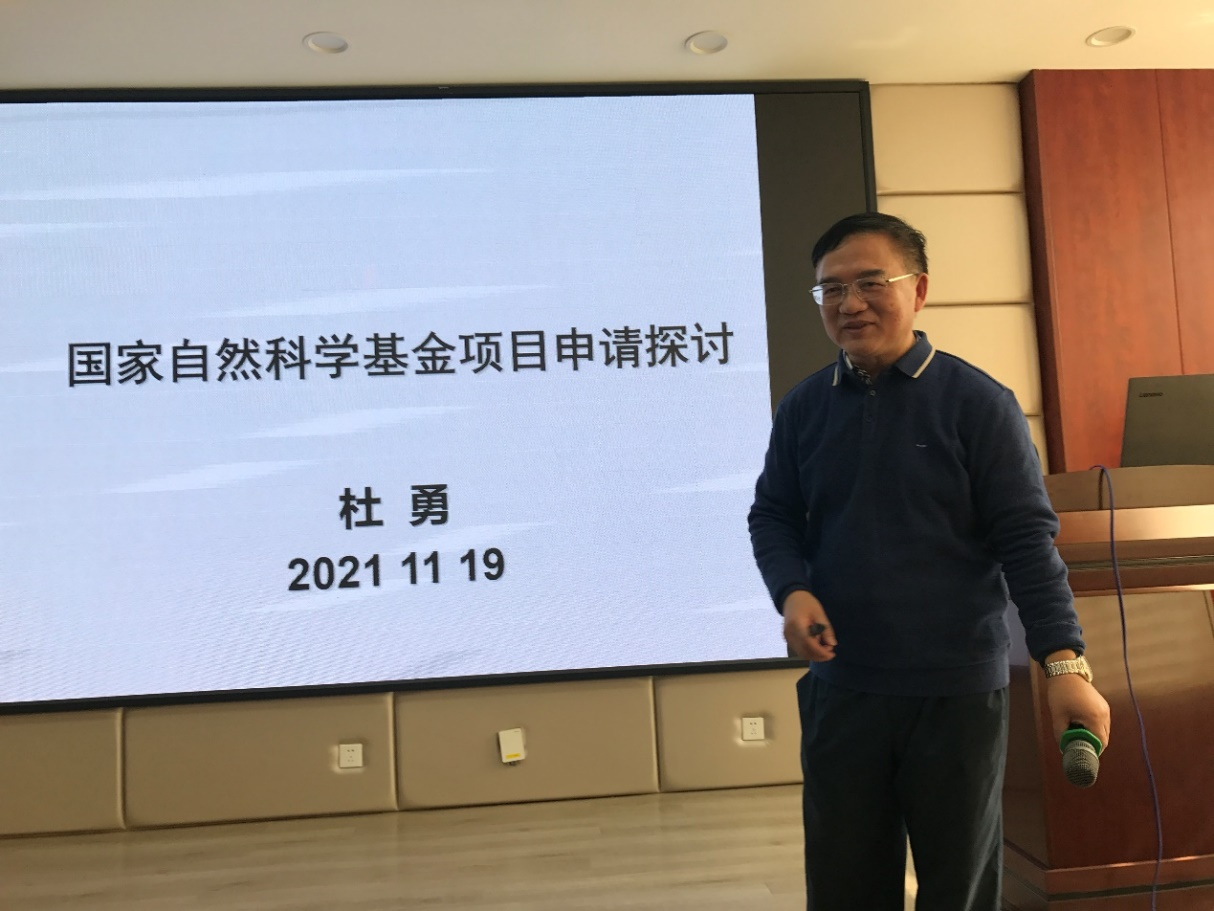 随后,杜勇教授作了题为自然科学基金项目申请探讨的报告,从基金选题构思、摘要及标题的凝炼、关键科学问题的撰写、内容设计等方面作了细致讲解,并分享了个人丰富的申报经验,对青年老师提出的基金申报疑问进行了严谨、详细且幽默的回答,该汇报对学院2022年基金申报工作起到了指导与推动作用。