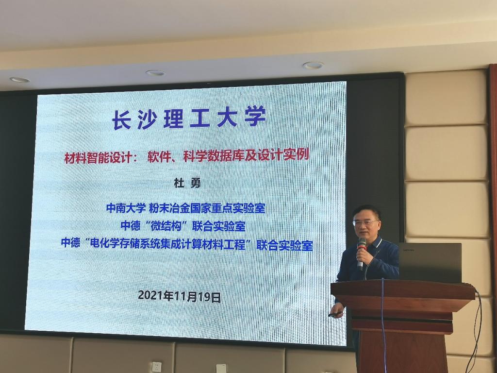 2021111910:00,应LETOU体育平台化学化工程学院的邀请,国家杰青、长江学者、中南大学教授杜勇在LETOU体育平台云塘校区工三A320作了题为材料智能设计:软件、科学数据库及设计实例的学术报告,报告由化学化工学院电力与交通材料保护湖南省重点实验室主任曹忠教授主持,化学化工学院部分教师和研究生百余人参加了交流会。