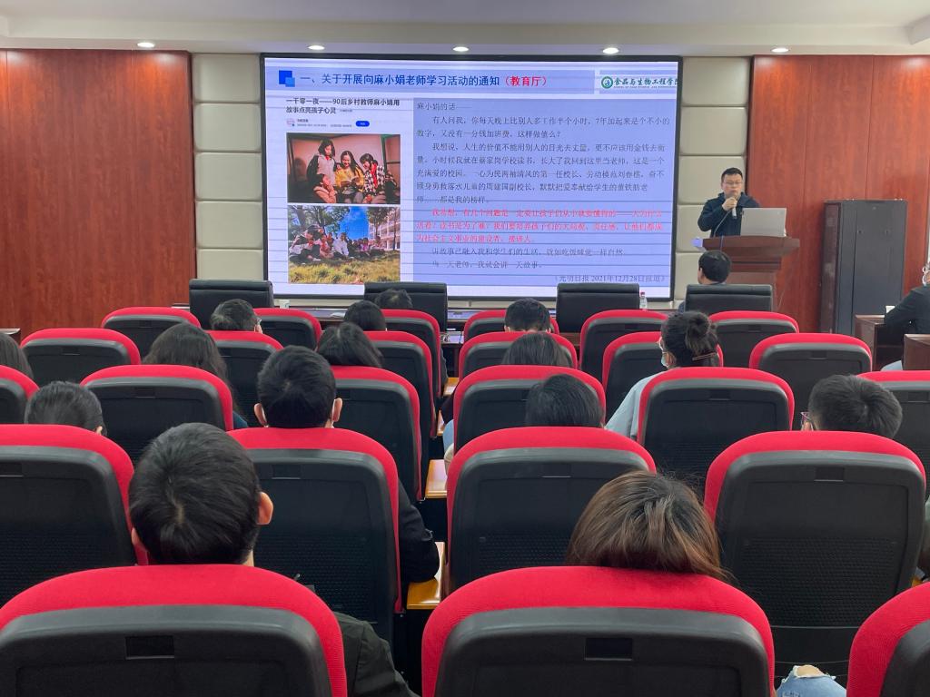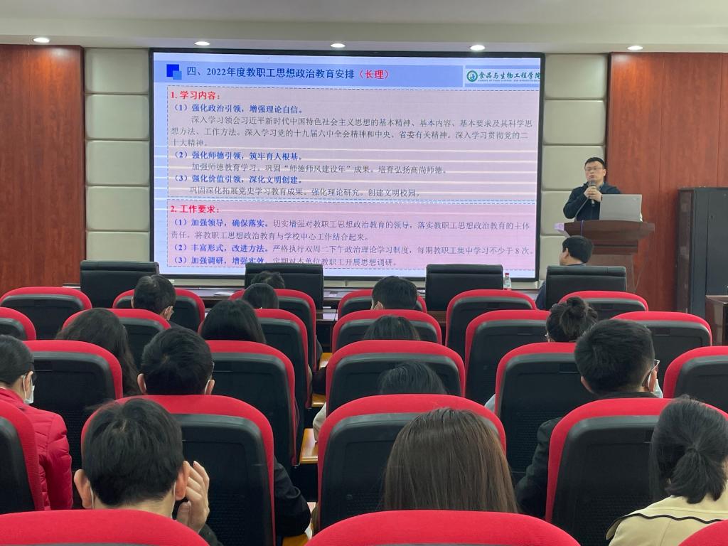 2022年4月19日下午,学院教职工大会在工三楼A320会议室进行,大会传达学习了省教育厅和学校近期相关文件精神。本次学习会由学院院长程云辉主持,学院党总支书记王建辉领学,学院领导和全体教职工参加学习。